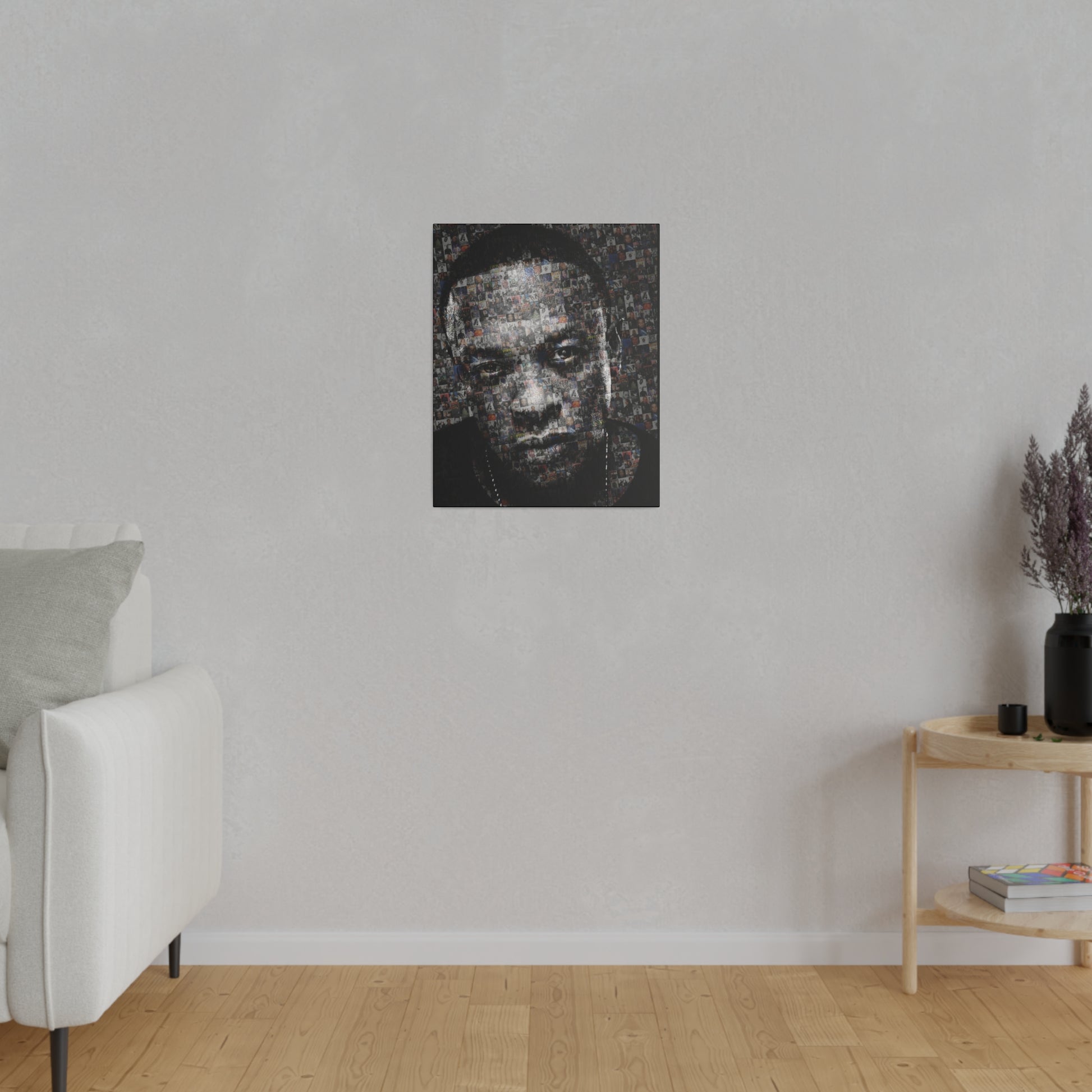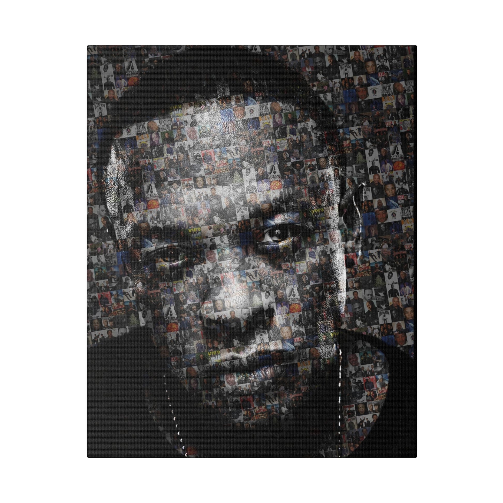 Check out this Dr. Dre original piece. Artist Robert Hansen takes some of Dre's most exciting pictures and uses them to create an amazing portrait of the rap superstar! Each matte canvas comes with back hanging already included for convenient placement. The frame is made with profile radial pine that is ethically sourced from renewable forests.
