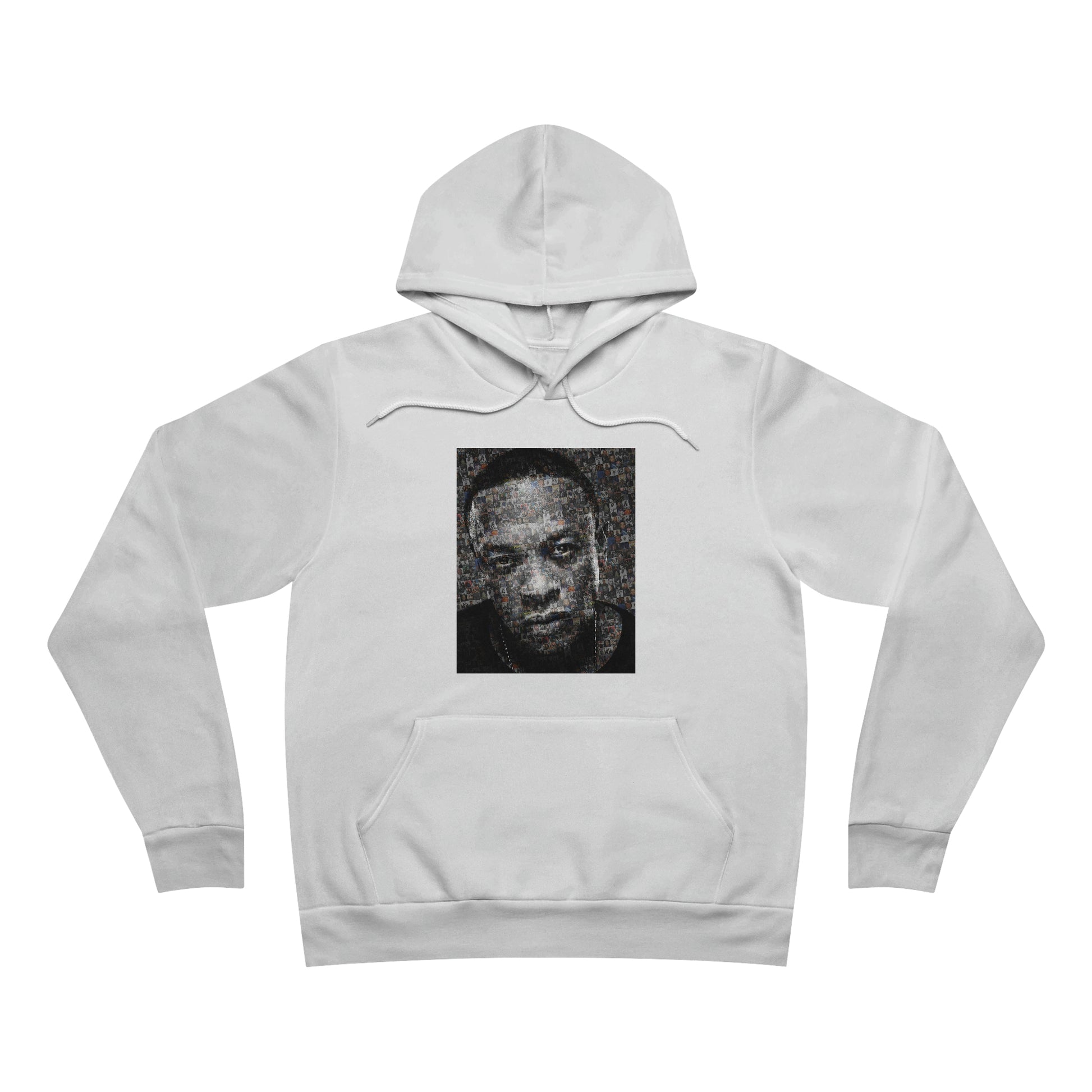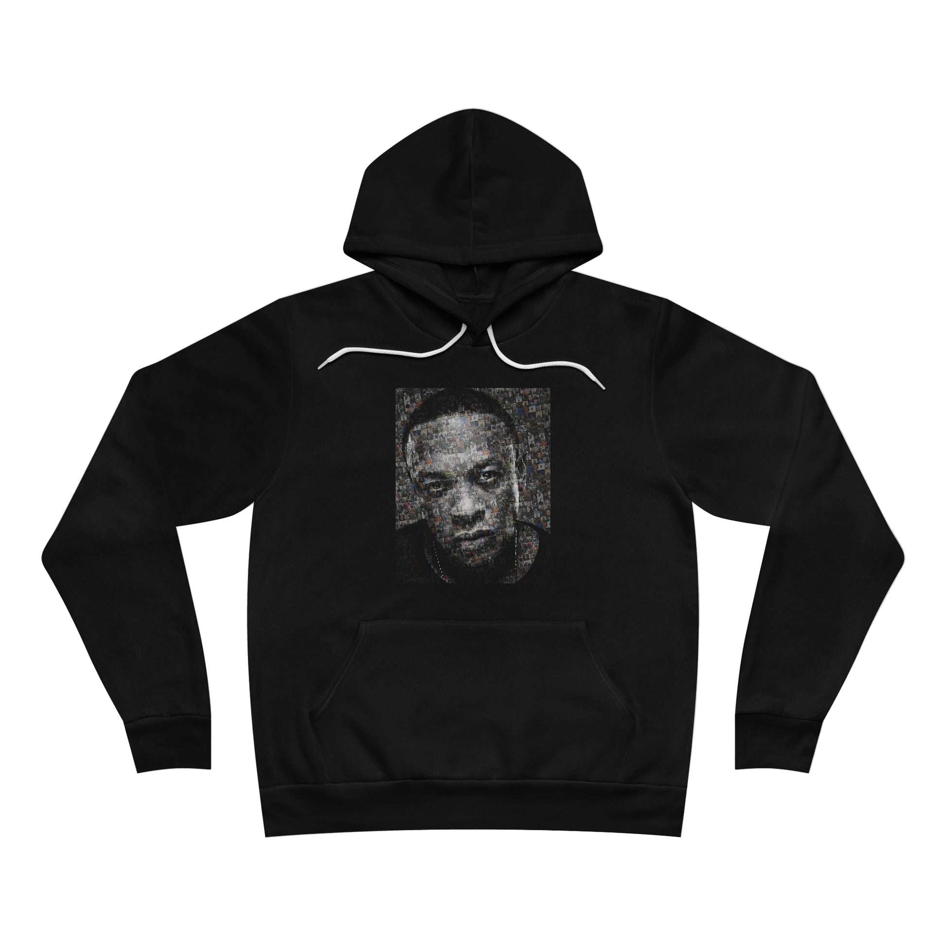 Check out this Dr. Dre original piece. Artist Robert Hansen takes some of CHRNC 30 - Dr. Dre's most exciting photos and uses them to create an amazing portrait of the rap superstar! The unisex sponge fleece pullover hoodie is a blend of Airlume cotton and polyester. The percentages vary according to color. A pouch-style pocket spreads across the lower half of the garment’s front. The hood can be tightened with a white drawcord. Both cuffs and waistband have ribbing for extra grip.