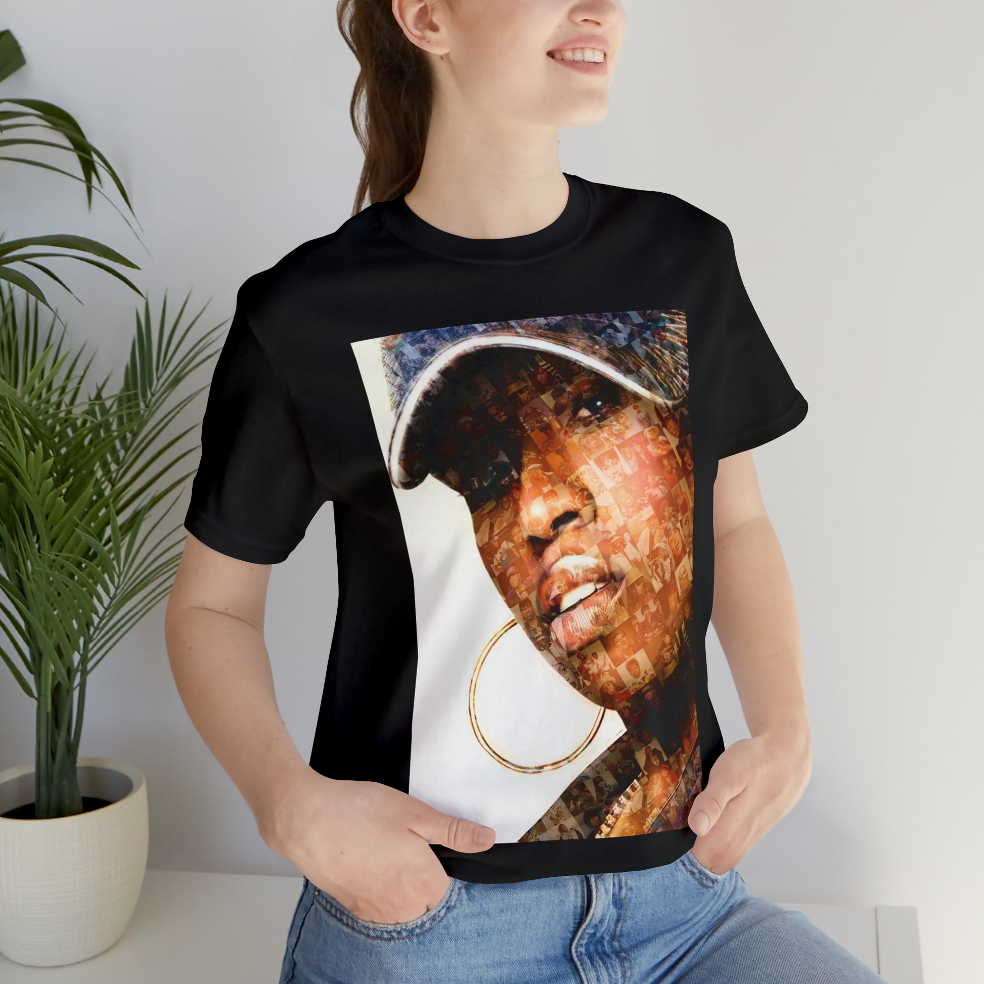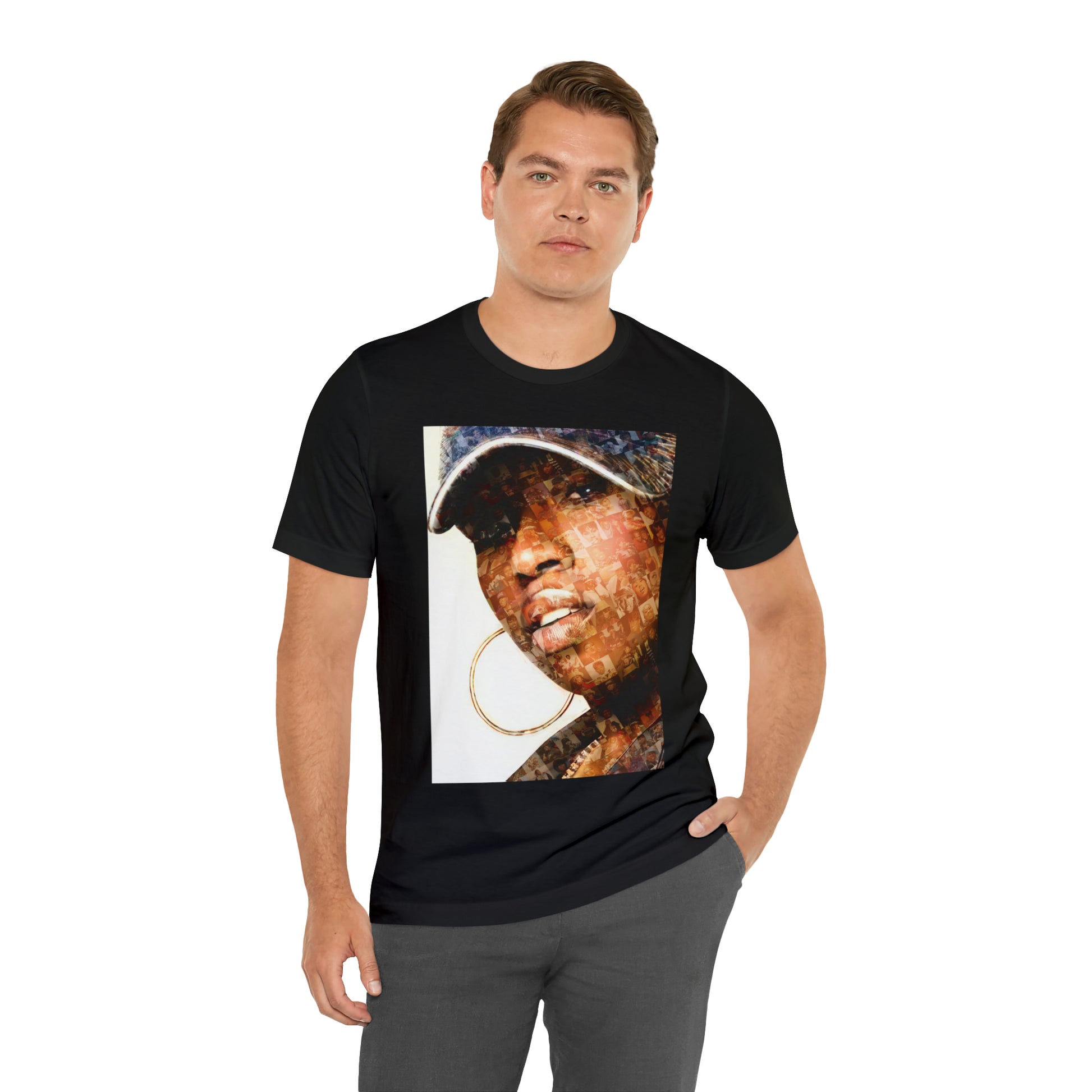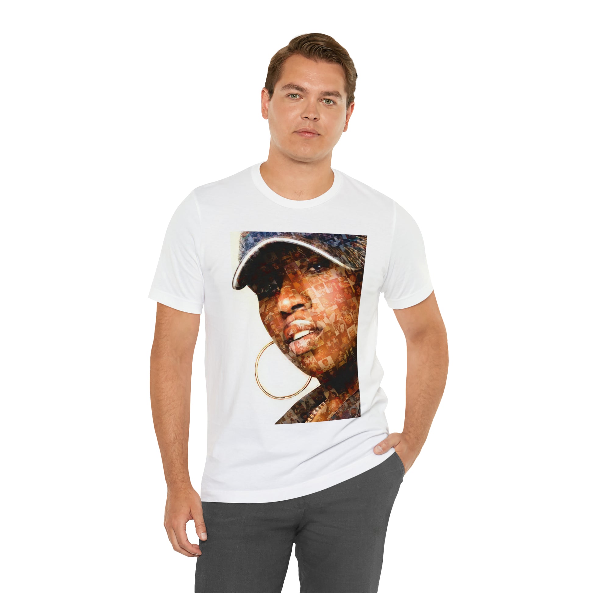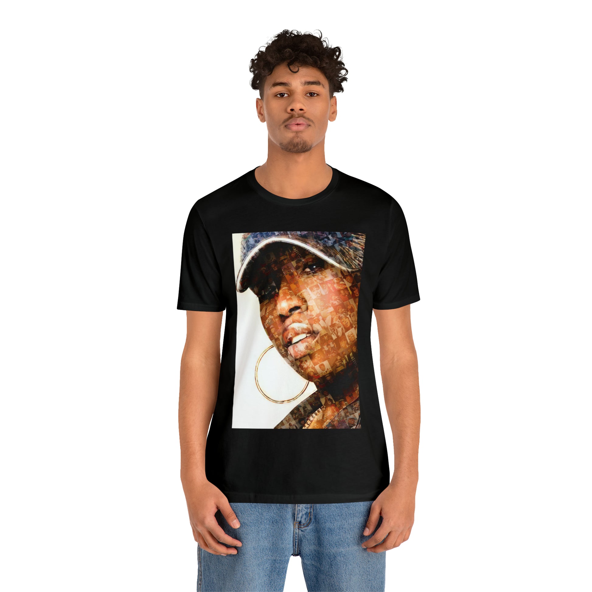 Check out this Missy Elliott original piece. Artist Robert Hansen takes some of Missy Elliott's most exciting pictures and uses them to create an amazing portrait of the rap superstar! This classic unisex jersey short sleeve tee fits like a well-loved favorite. Soft cotton and quality print make users fall in love with it over and over again. These t-shirts have-ribbed knit collars to bolster shaping. The shoulders have taping for better fit over time. Dual side seams hold the garment's shape for longer.