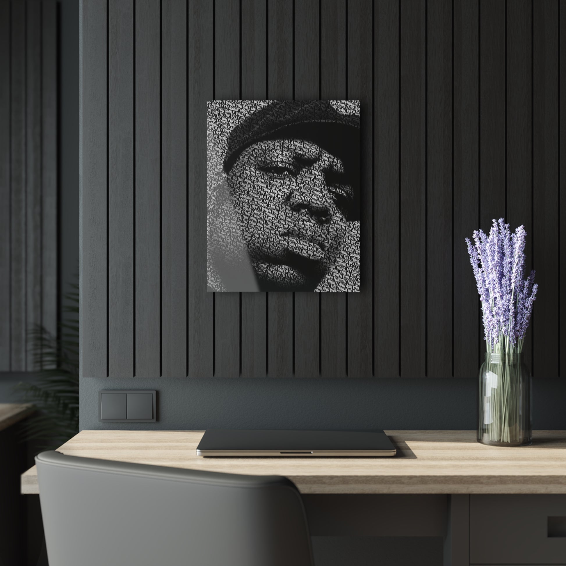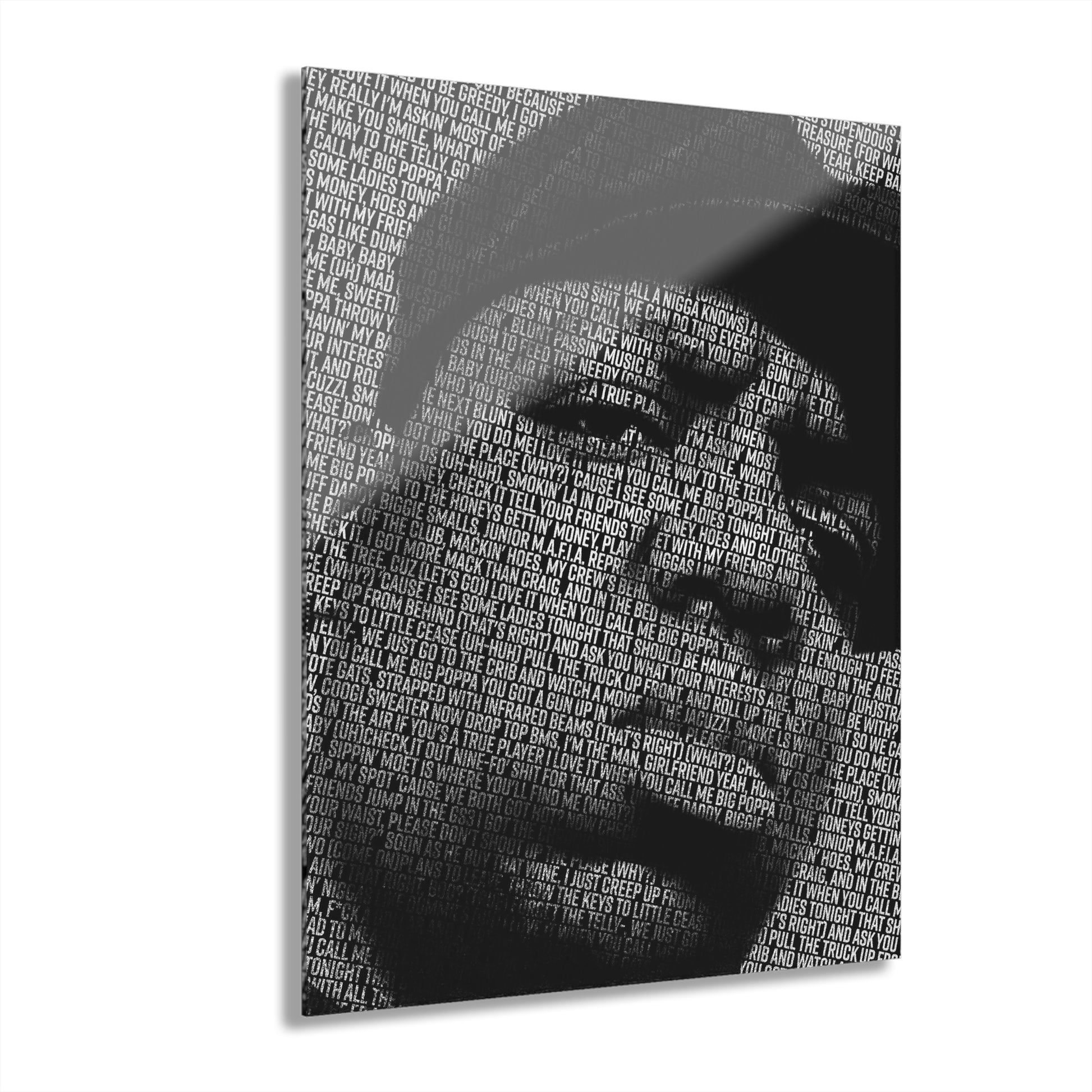 Check out this Notorious B.I.G. original piece. Artist Robert Hansen takes some of Biggies's most exciting lyrics and uses them to create an amazing portrait of the rap superstar! Made to bring art-gallery quality to exhibiting artwork in any space, these custom acrylic prints are the perfect means to show art to the world. These prints are water-resistant and effortless to maintain clean like new thanks to their 0.25"-thick, Grade-A acrylic material. Each print comes with a French cleat backing and installation screws, for easy and secure hanging.